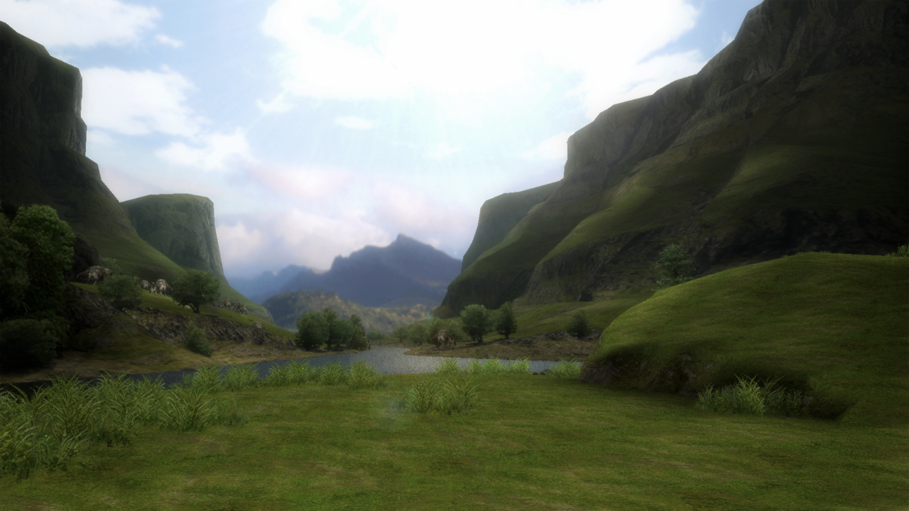 丸い岩肌と、その台地を囲むように流れる小河から
